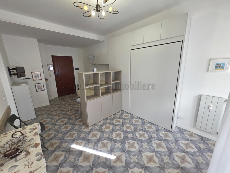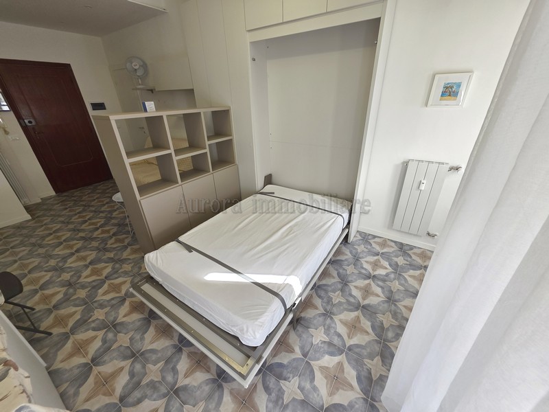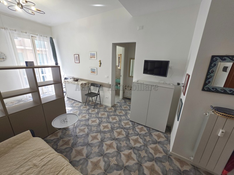 A Circa 350 metri dal mare, in condominio recentemente ristrutturato, proponiamo ampio monolocale al secondo piano con ascensore, ampio parcheggio condominiale sotto casa libero. L'appartamento è così composto: ingresso diretto su monocamera arredata con divano letto matrimoniale e letto alla francese a scomparsa, bagno finestrato con piatto doccia, angolo cottura finestrato attrezzato su misura, fuochi ad induzione,forno a microonde, fornetto,frigo ad incasso con cella freezer, lavastoviglie. Ampia balconata, vista aperta, arredado con mobili nuovi.