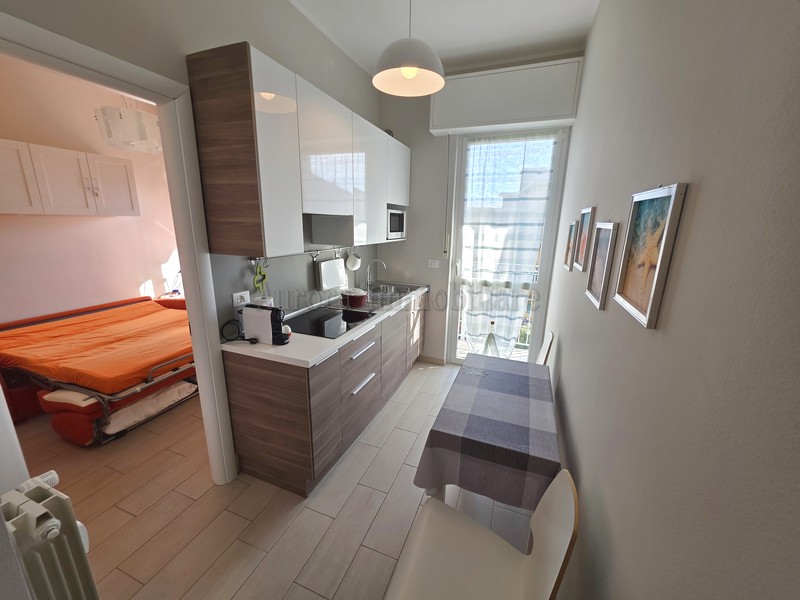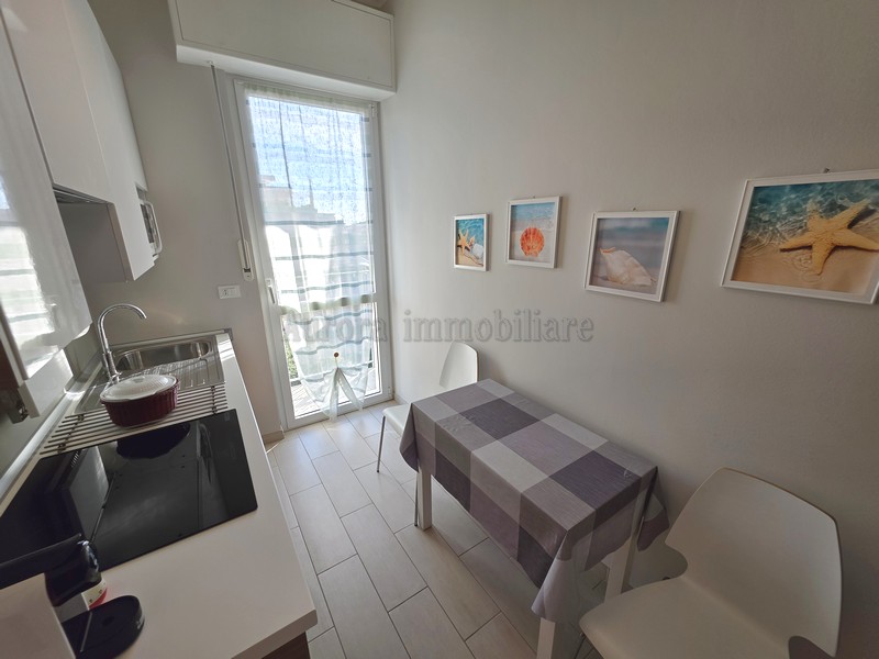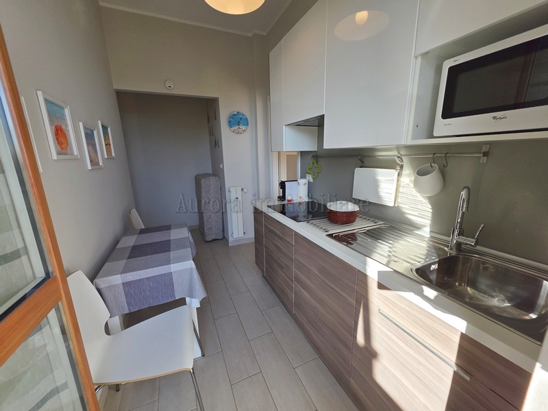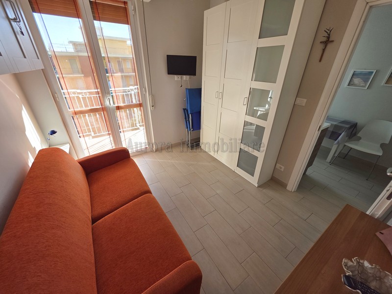 A Circa 400 metri dal mare, in condominio recentemente ristrutturato con parcheggio interno recintato libero, proponiamo camera e cucina totalmente ristrutturato, con ascensore dal piano terra composto da: ingresso su corridoio con letto singolo richiudibile, bagno finestrato con piatto doccia, cucina abitabile attrezzata su misura, fuochi a gas,forno a microonde, frigo ad incasso con cella freezer. La camera arredata zona giorno/notte, dispone di un divano letto matrimoniale. Ampia balconata angolare a cui si accede a cucina e camera, vista aperta, arredado con mobili nuovi. Supermercato a circa 200 metri lineari.