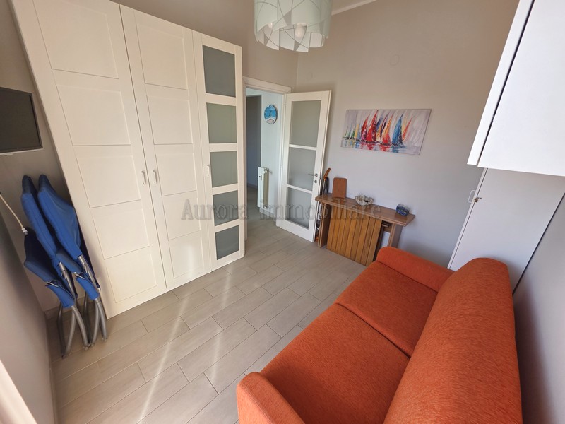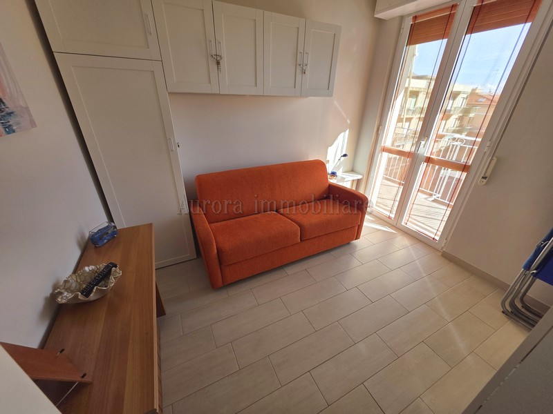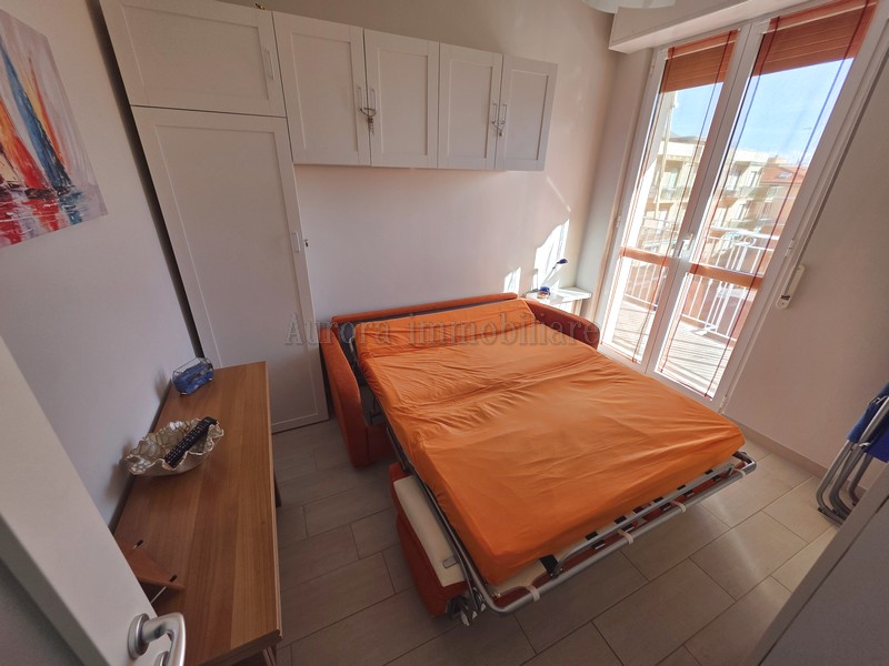 A Circa 400 metri dal mare, in condominio recentemente ristrutturato con parcheggio interno recintato libero, proponiamo camera e cucina totalmente ristrutturato, con ascensore dal piano terra composto da: ingresso su corridoio con letto singolo richiudibile, bagno finestrato con piatto doccia, cucina abitabile attrezzata su misura, fuochi a gas,forno a microonde, frigo ad incasso con cella freezer. La camera arredata zona giorno/notte, dispone di un divano letto matrimoniale. Ampia balconata angolare a cui si accede a cucina e camera, vista aperta, arredado con mobili nuovi. Supermercato a circa 200 metri lineari.
